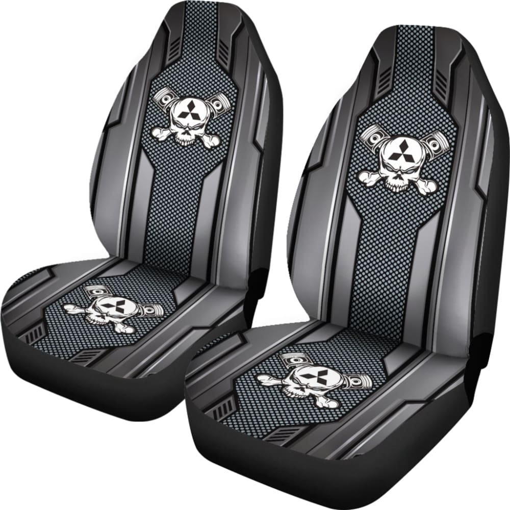 Black Grey Mechanic Skull Mitsubishi Car Seat Covers 210801