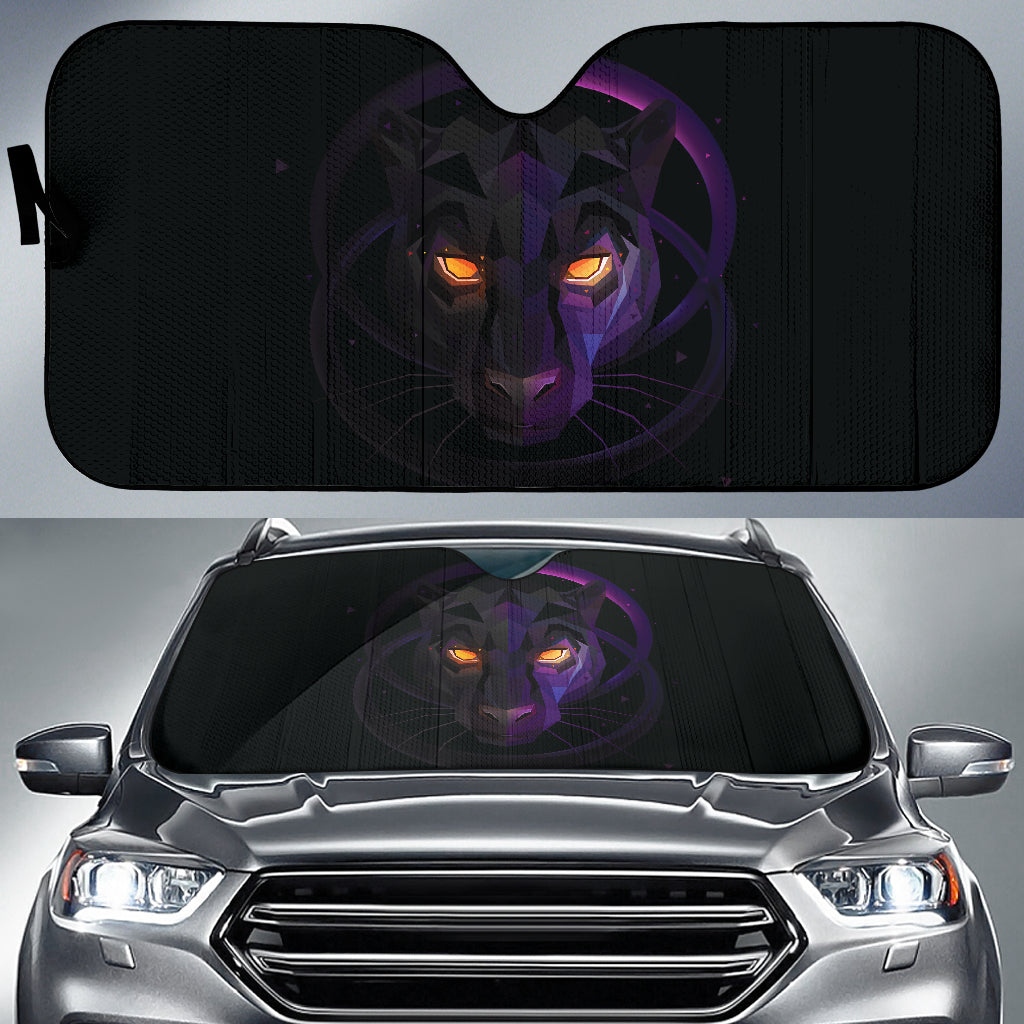 Black Panther Geometric Face with Glowing Eyes Car Auto Sun Shades 211502