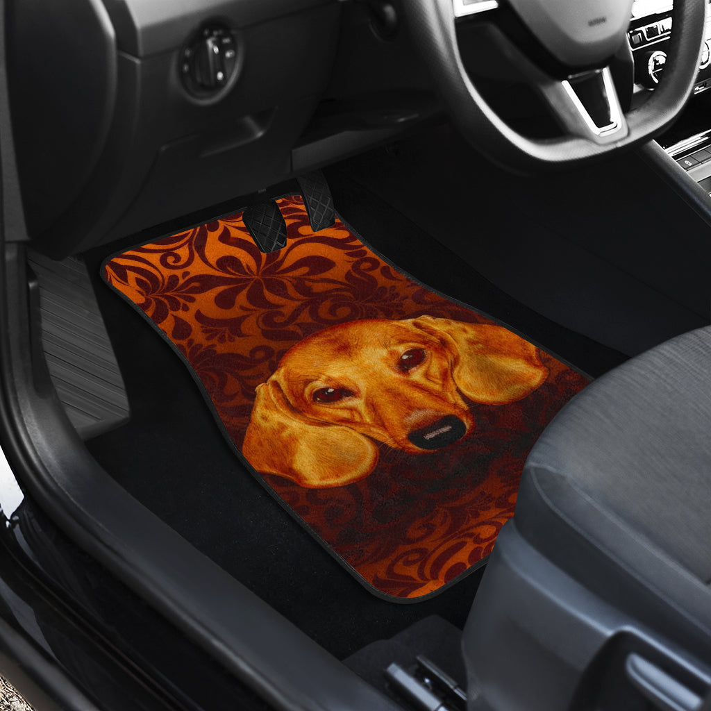 Dachshund Expression Framed by Classic Orange Swirls Car Floor Mats 211402