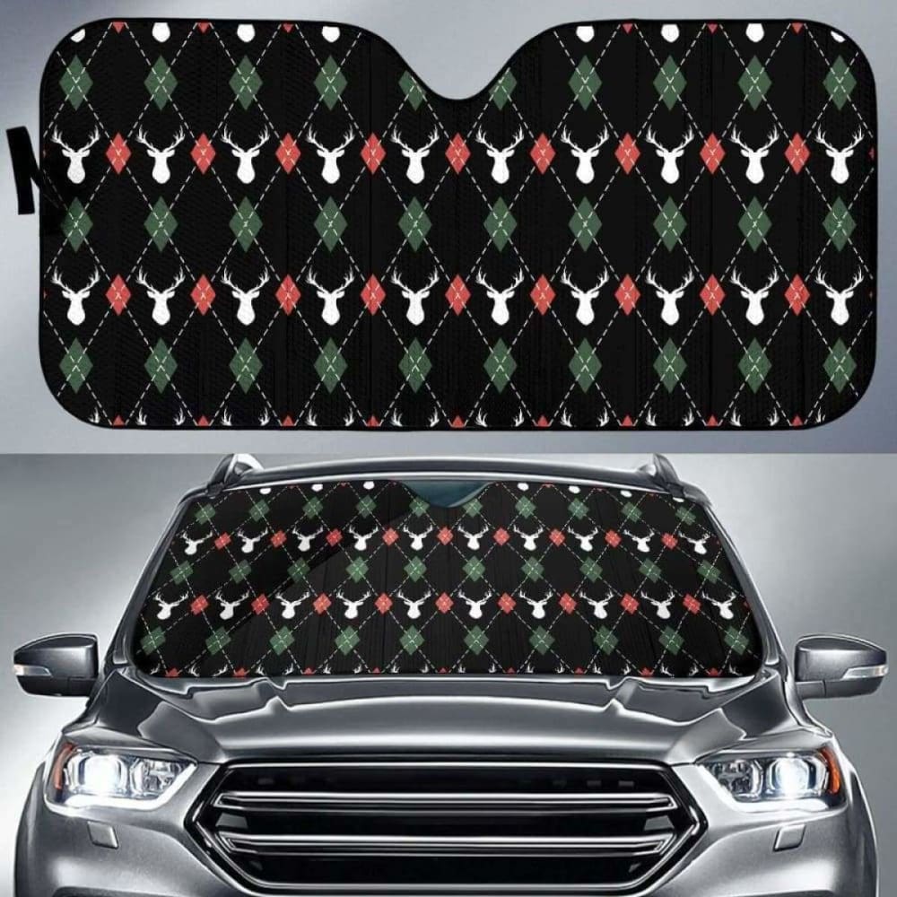 Deer Christmas New Year Pattern Argyle Car Auto Sun Shades 172609