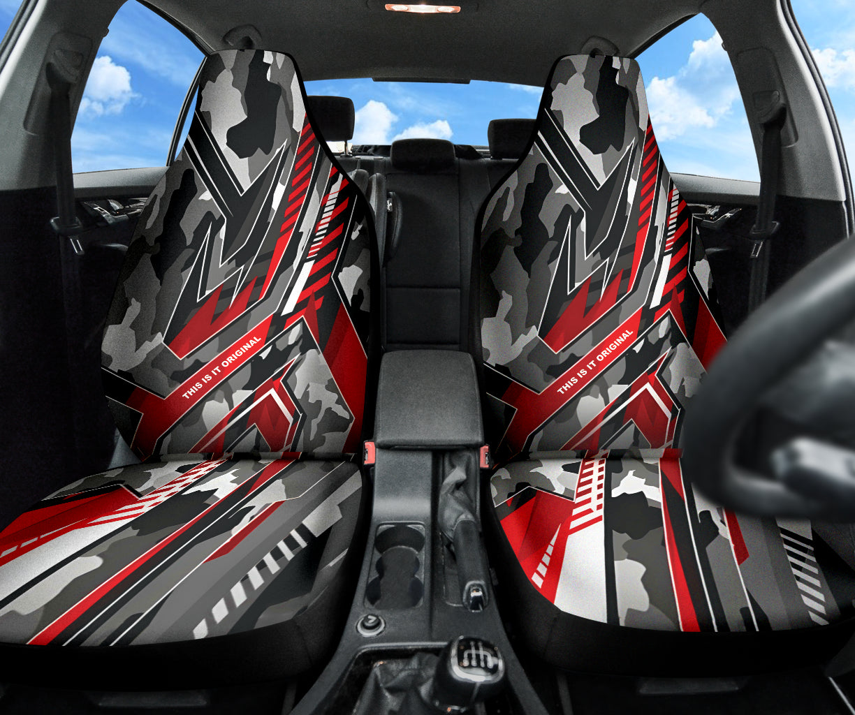 Extreme Racing Army Style Grey & Red Design Car Seat Covers Version 2 211002