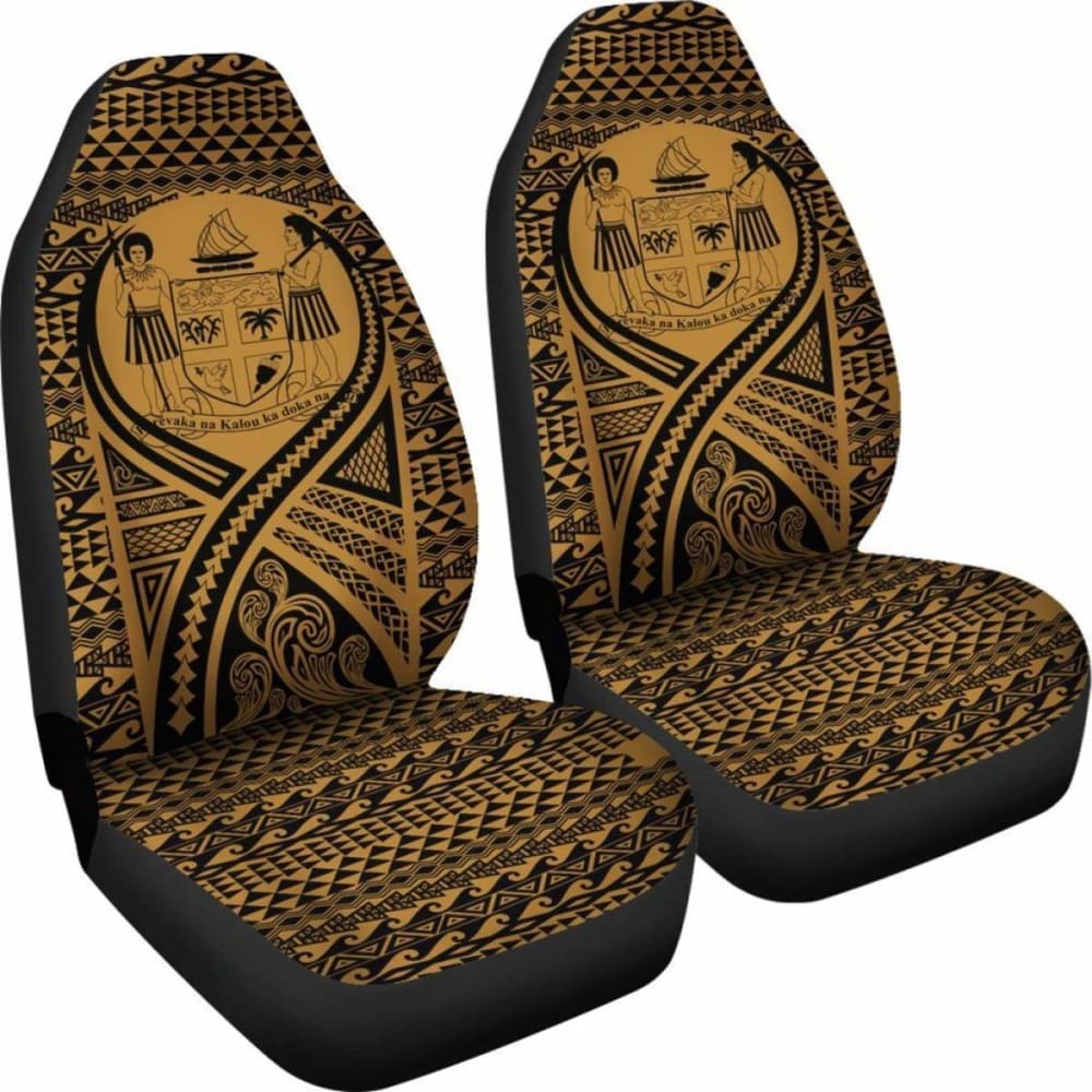 Fiji Car Seat Cover - Fiji Coat Of Arms Polynesian Tattoo Gold - 9 174914