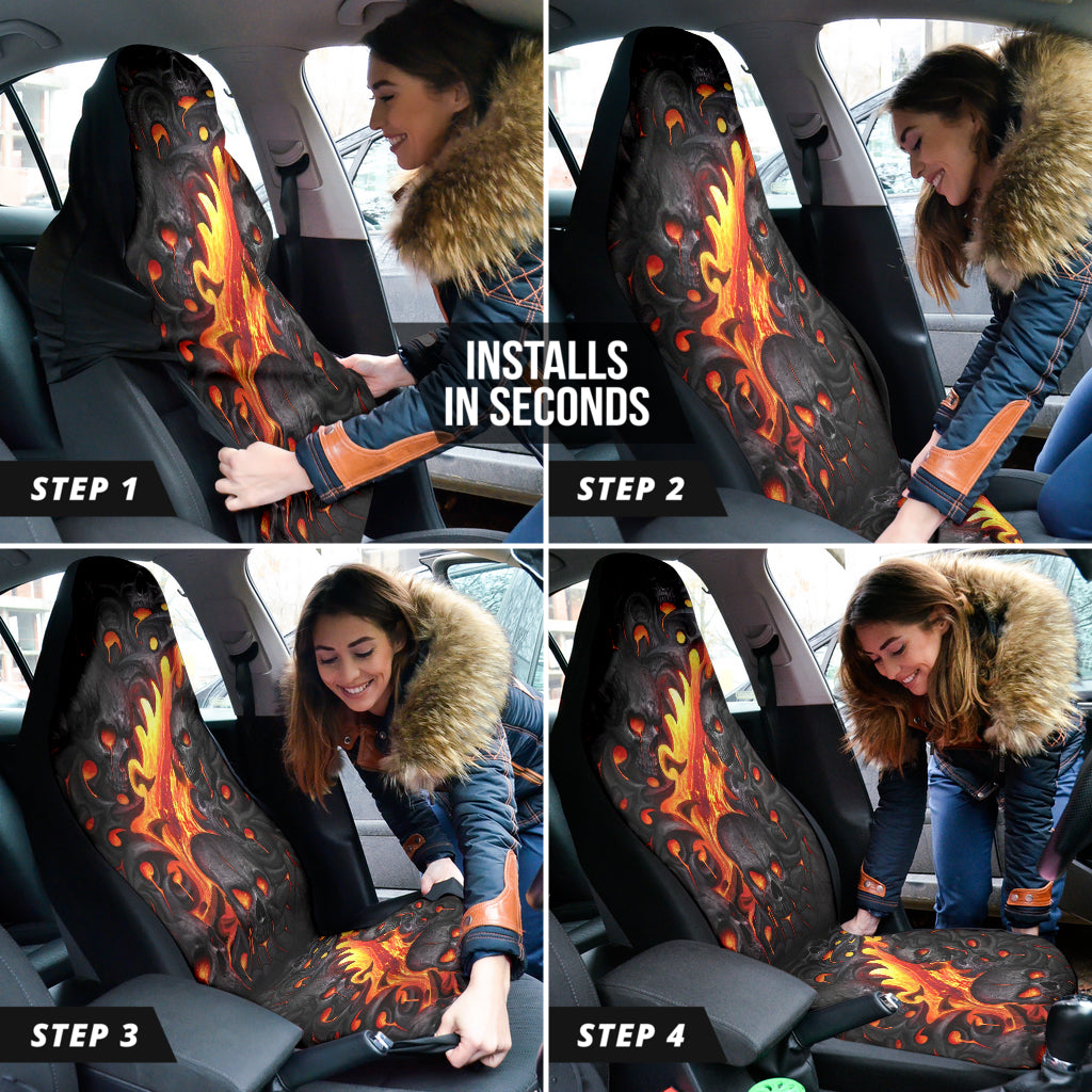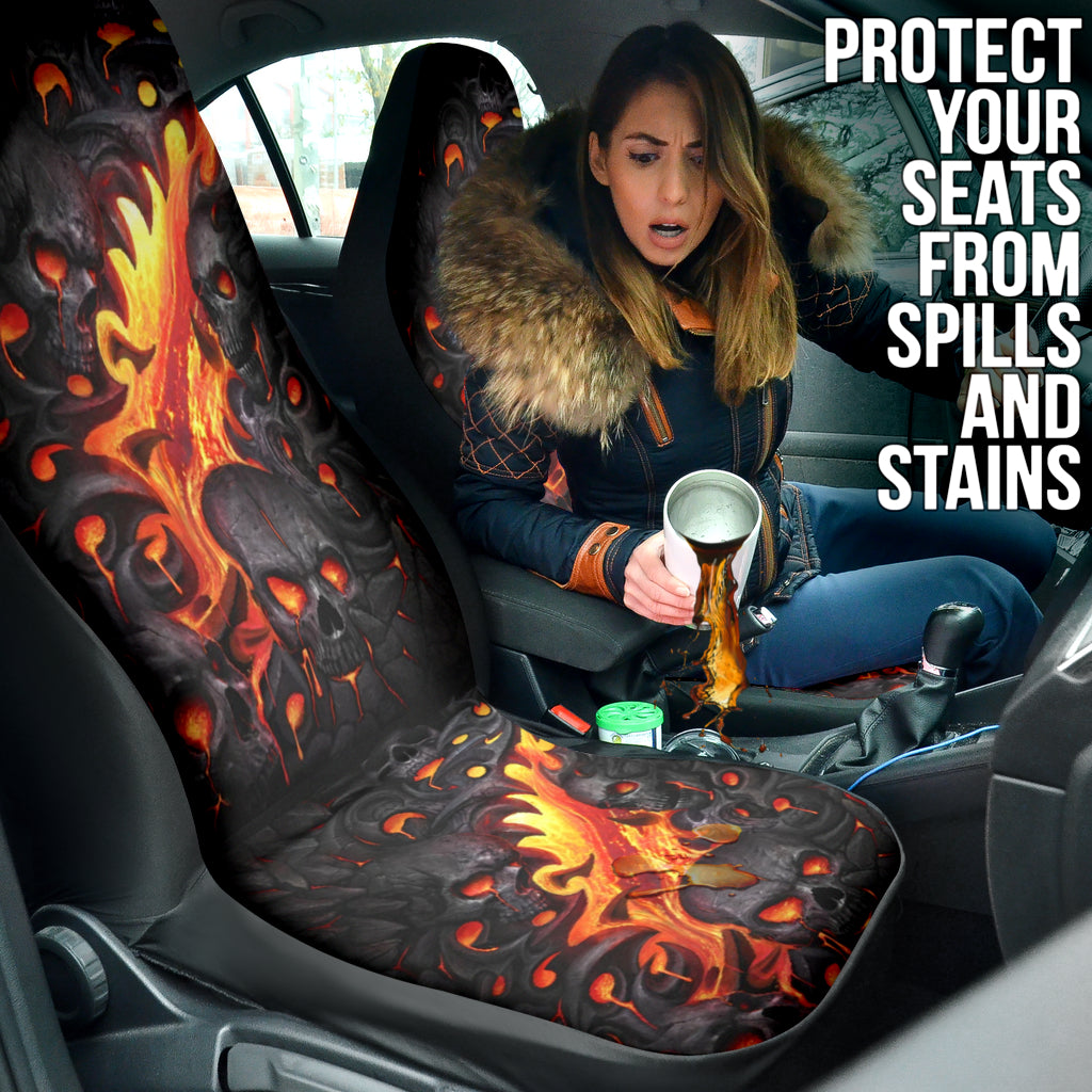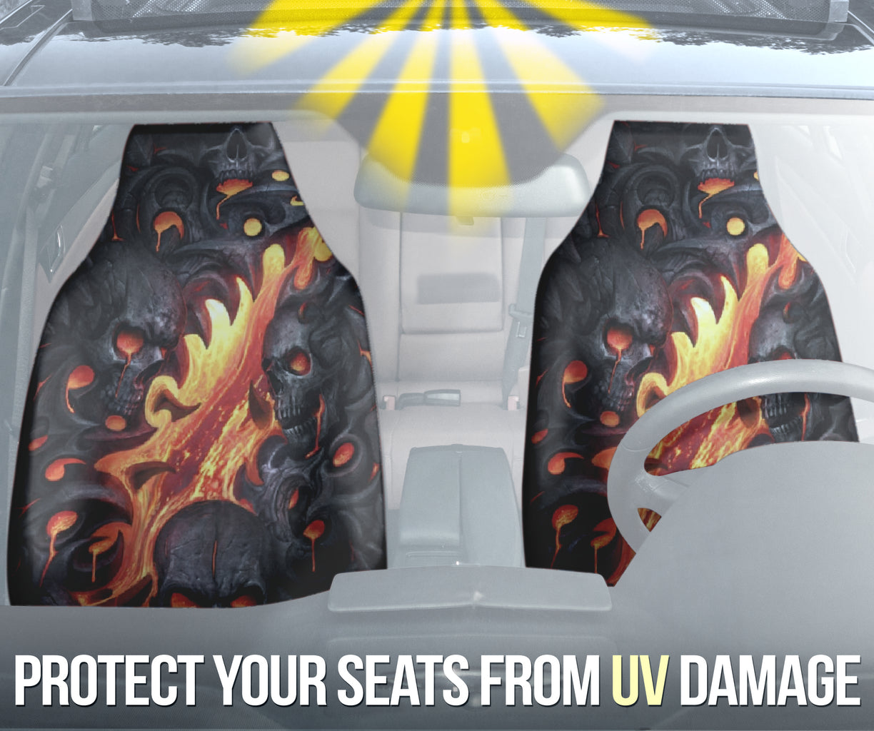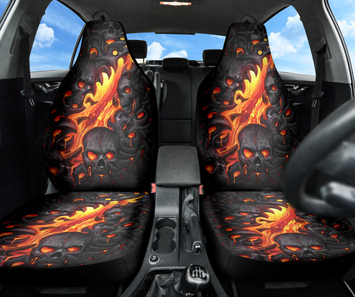 All of our Fire Flaming Skull Car Seat Covers 210902 (Set of 2) are custom-made-to-order and handcrafted to the highest quality standards.
