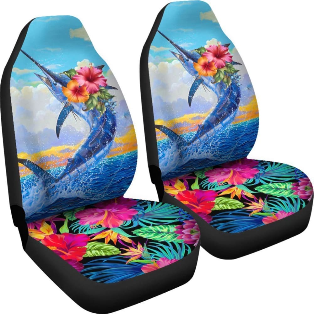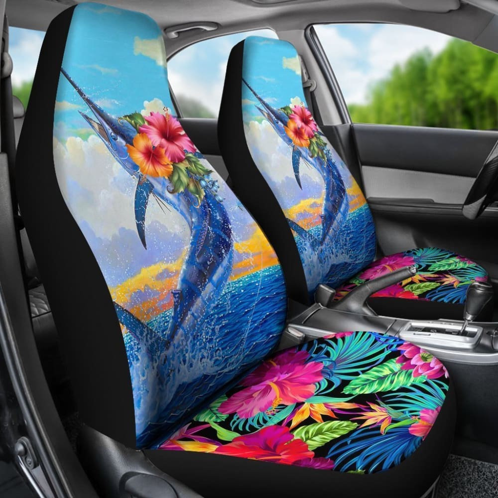Fishing Car Seat Covers Blue Marlin Hawaii Flowers 182417