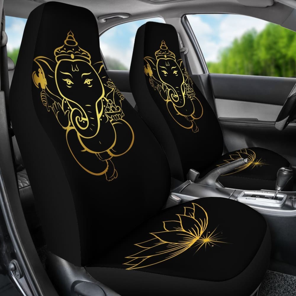 Golden Lord Ganesha (Remover Of Obstacles) With Lotus- Car Seat Cover 174510