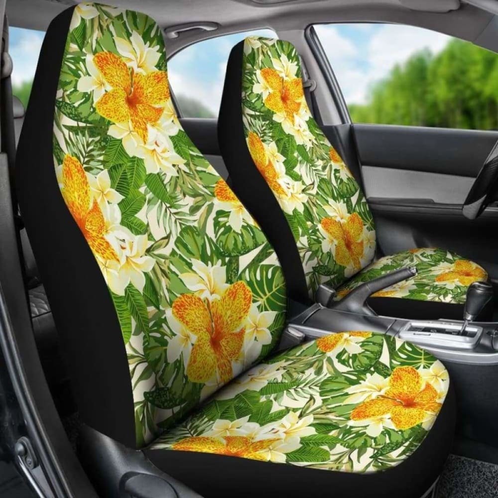 Green Yellow And Orange Tropical Flower Car Seat Covers 105905