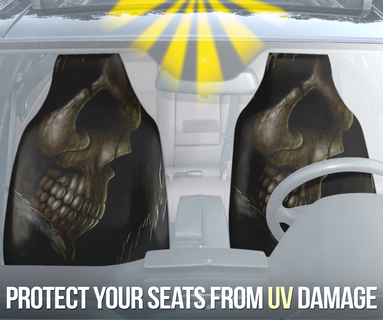 All of our Grim Reaper Last Thing To See Car Seat Covers Version 1 211302 (Set of 2) are custom-made-to-order and handcrafted to the highest quality standards.