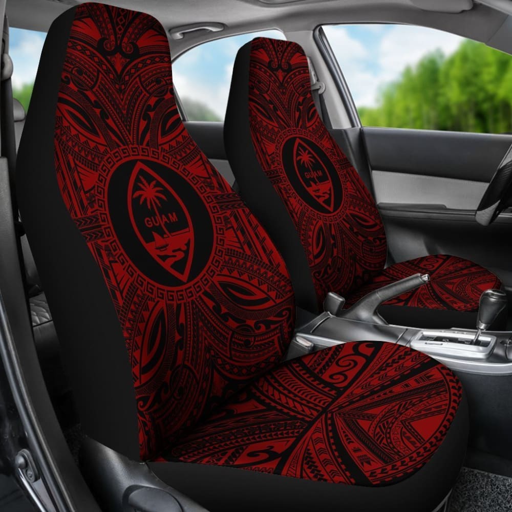 Guam Car Seat Cover - Guam Coat Of Arms Polynesian Red Black 093223