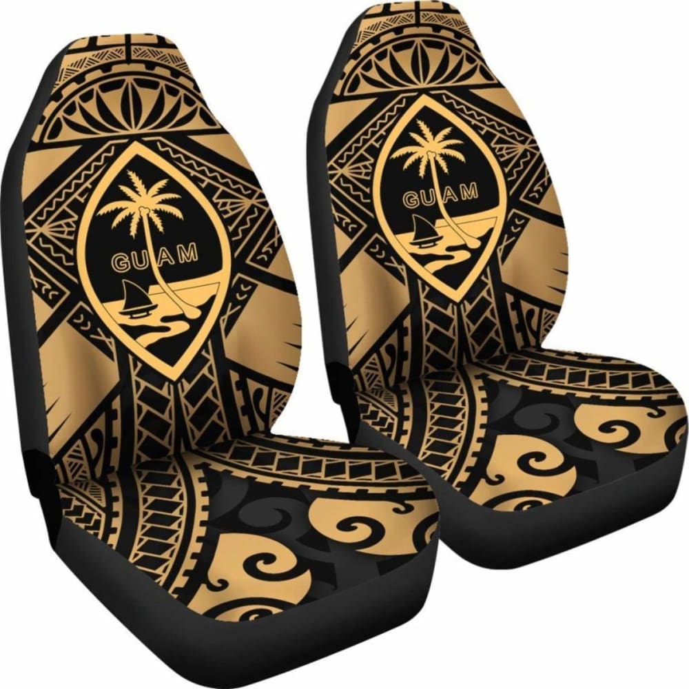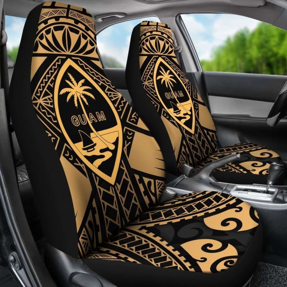 Guam Polynesian Car Seat Covers - Guam Gold Seal With Polynesian Tattoo - 174914