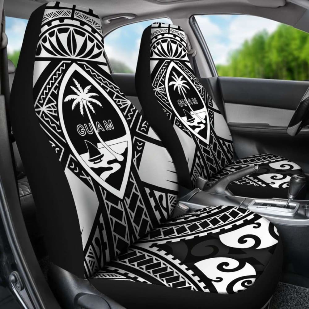 Guam Polynesian Car Seat Covers - Guam White Seal With Polynesian Tattoo Ver 01 - 174914