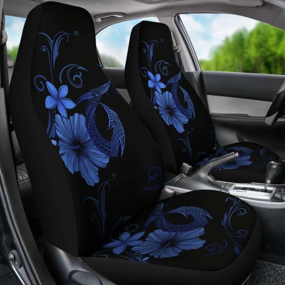 Hawaii Fish Hook Hibiscus Poly Turquoise Car Seat Covers - 232125