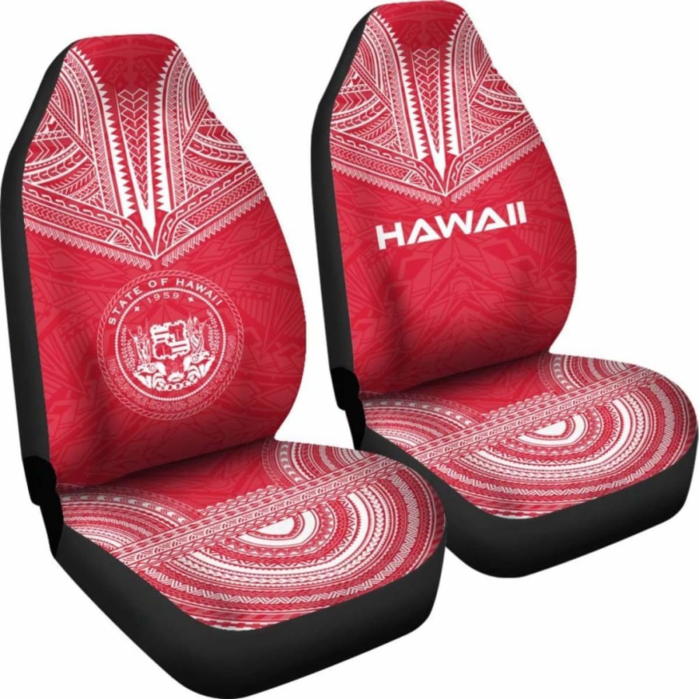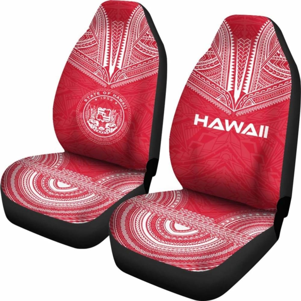Hawaii Car Seat Cover - Hawaii Seal Polynesian Chief Tattoo Red Version - 10 174914