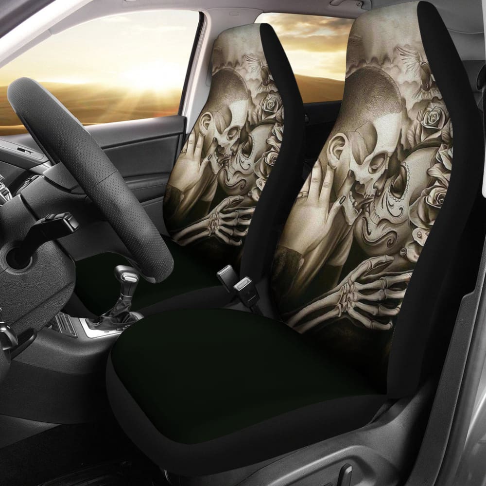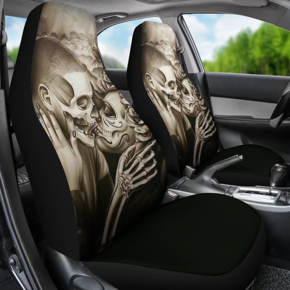 King And Queen Kissing Skulls Skeletons Death Car Seat Covers 212001