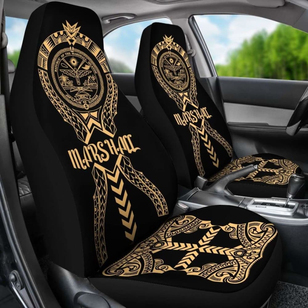 Marshall Islands Car Seat Covers - Marshall Islands Seal Polynesian Tribal Gold - 105905