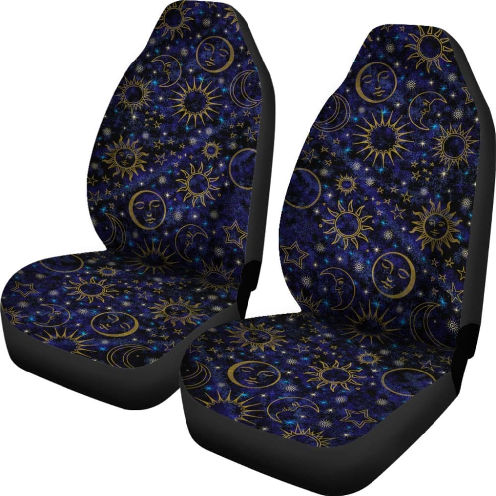 Celestial Night Sky Black Blue Gold Suns Moons Stars Car Seat Covers 101819