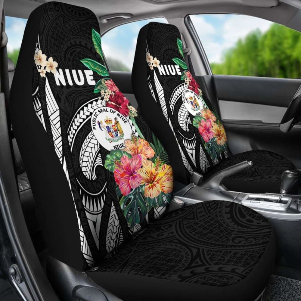 Niue Car Seat Covers Coat Of Arms Polynesian With Hibiscus 232125