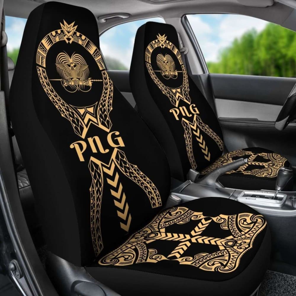 Papua New Guinea Car Seat Covers Polynesian Tribal Gold 105905