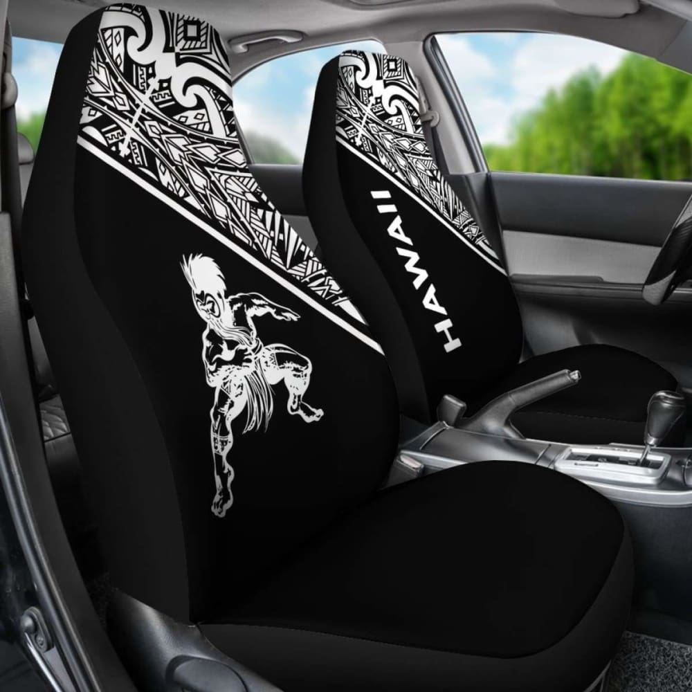 Hawaii Car Seat Covers - Polynesian Warriors Tattoo White Curve - 39 174914
