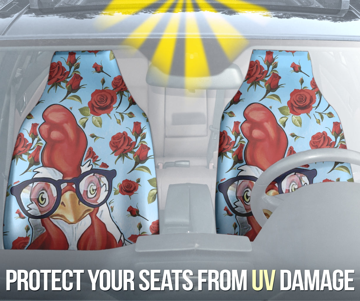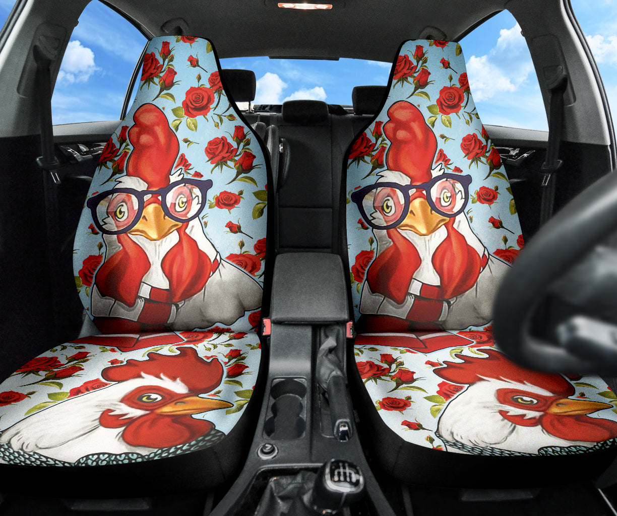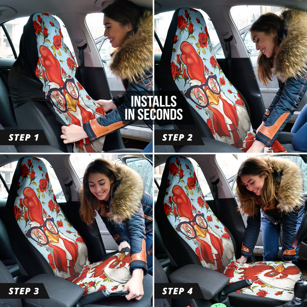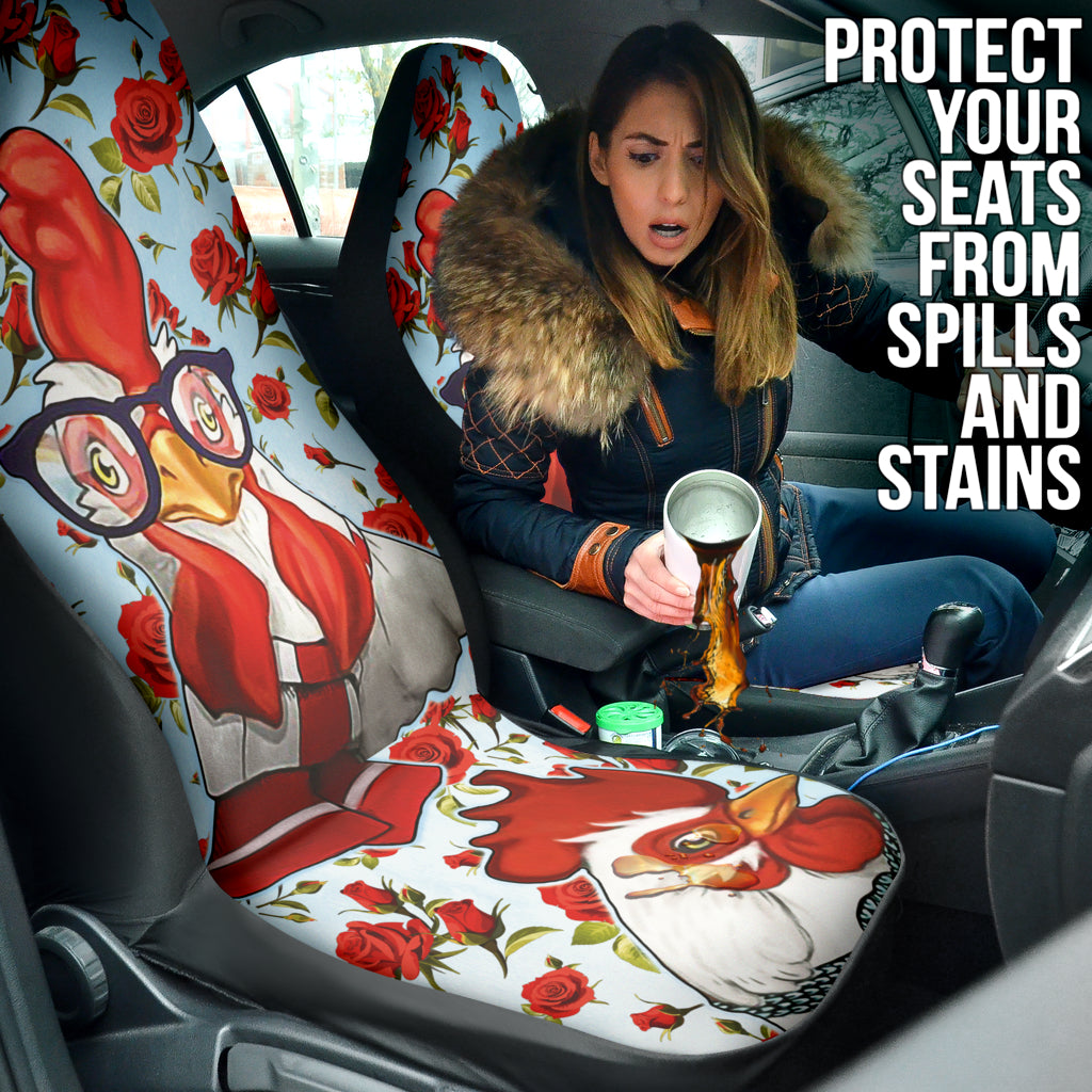 Rooster Chicken Flower Print Car Seat Covers Version 1 211002