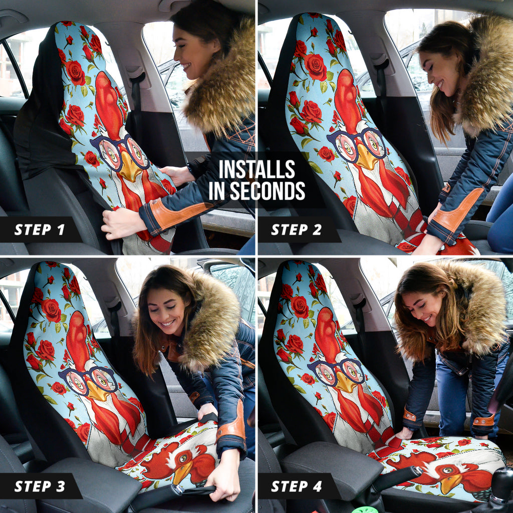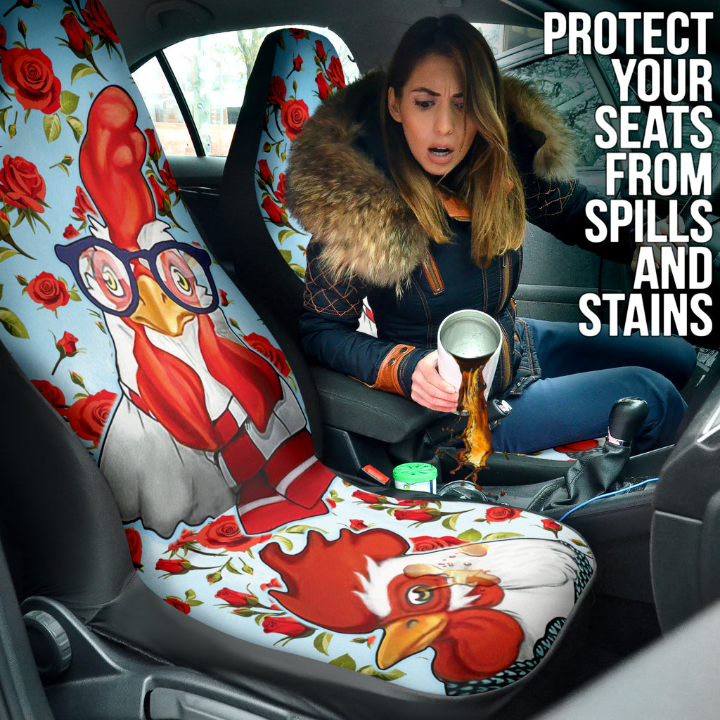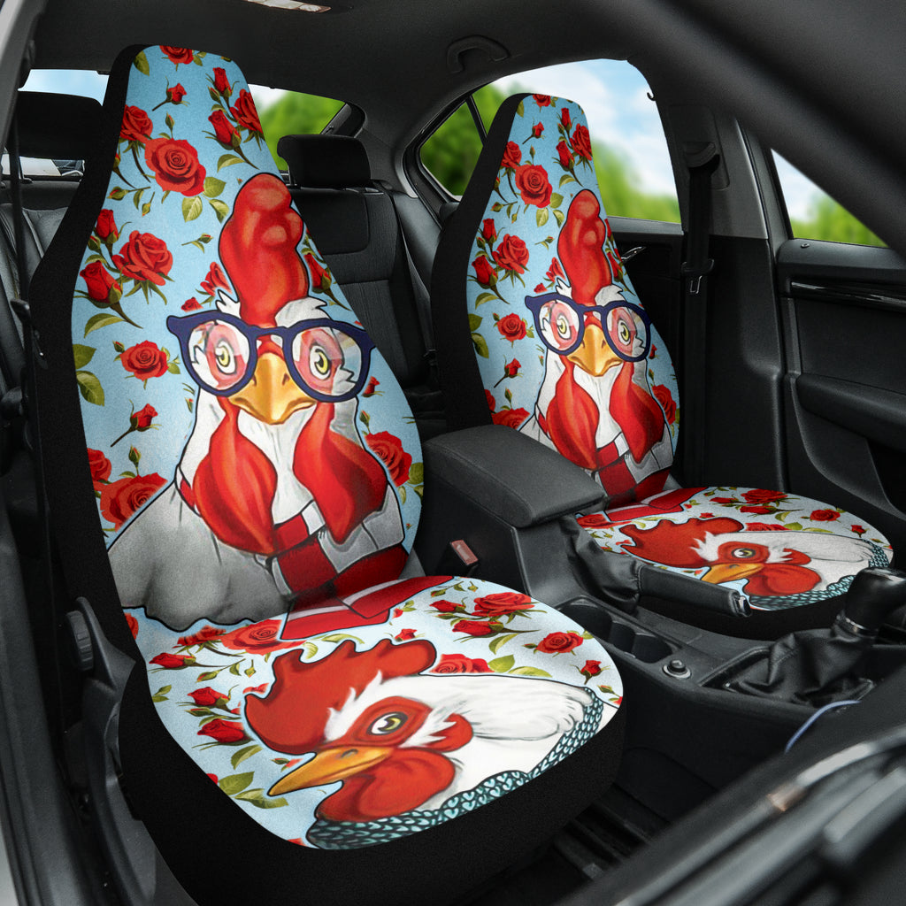 Rooster Chicken Flower Print Car Seat Covers Version 2 211002