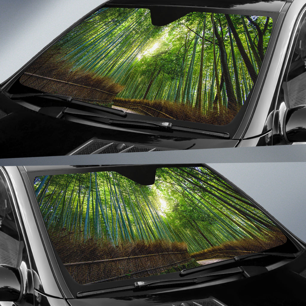 Tranquil Bamboo Forest Path Bathed in Light Car Auto Sun Shades 211402