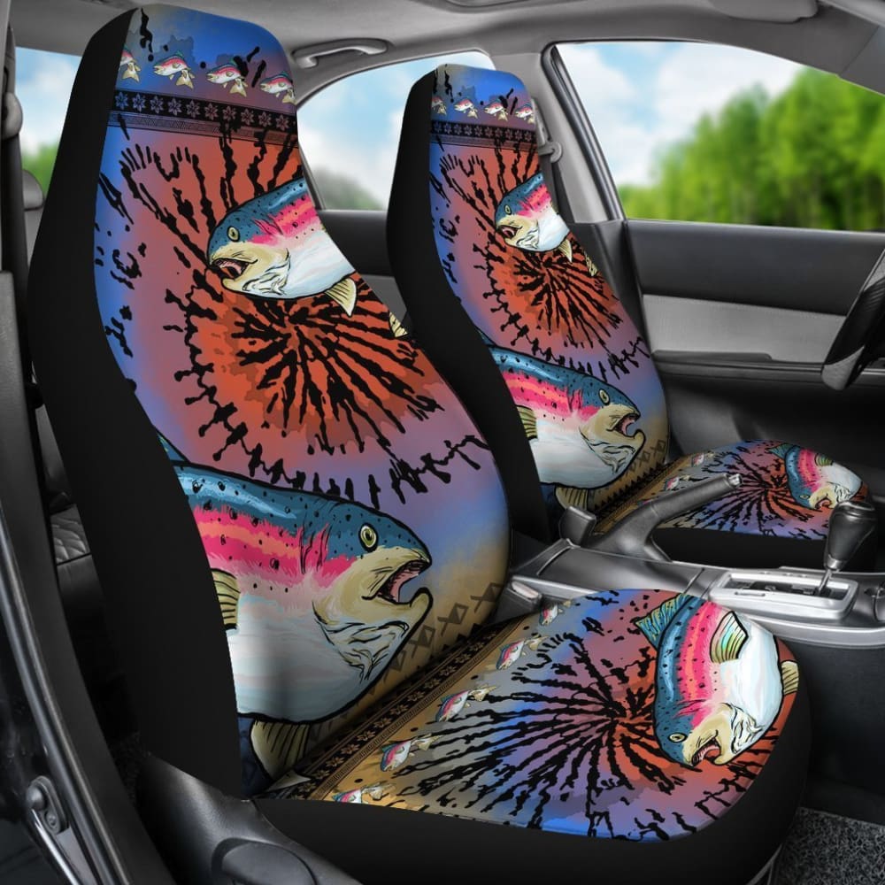Trout Fishing Car Seat Covers Rainbow Trout Tied Dye Car Decor 182417