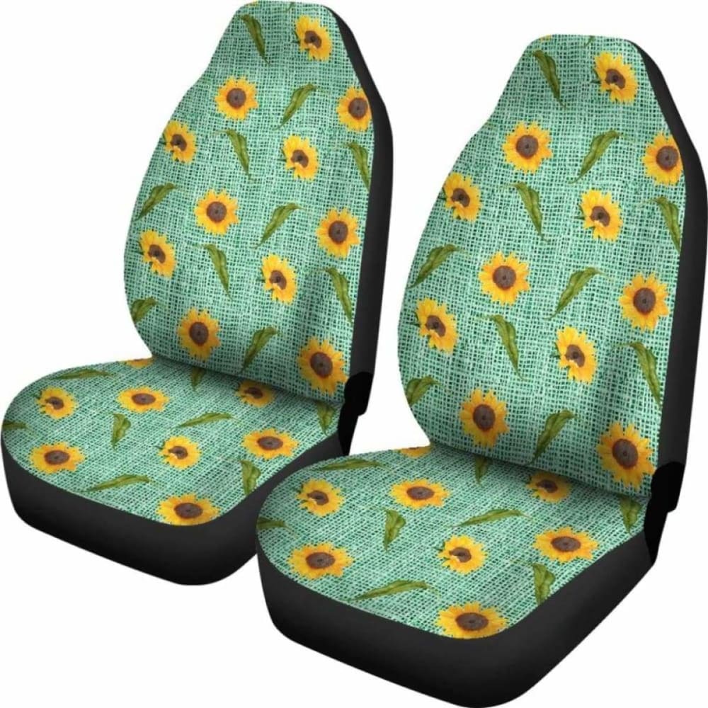 Turquoise Burlap Design With Sunflower Pattern Car Seat Covers 105905