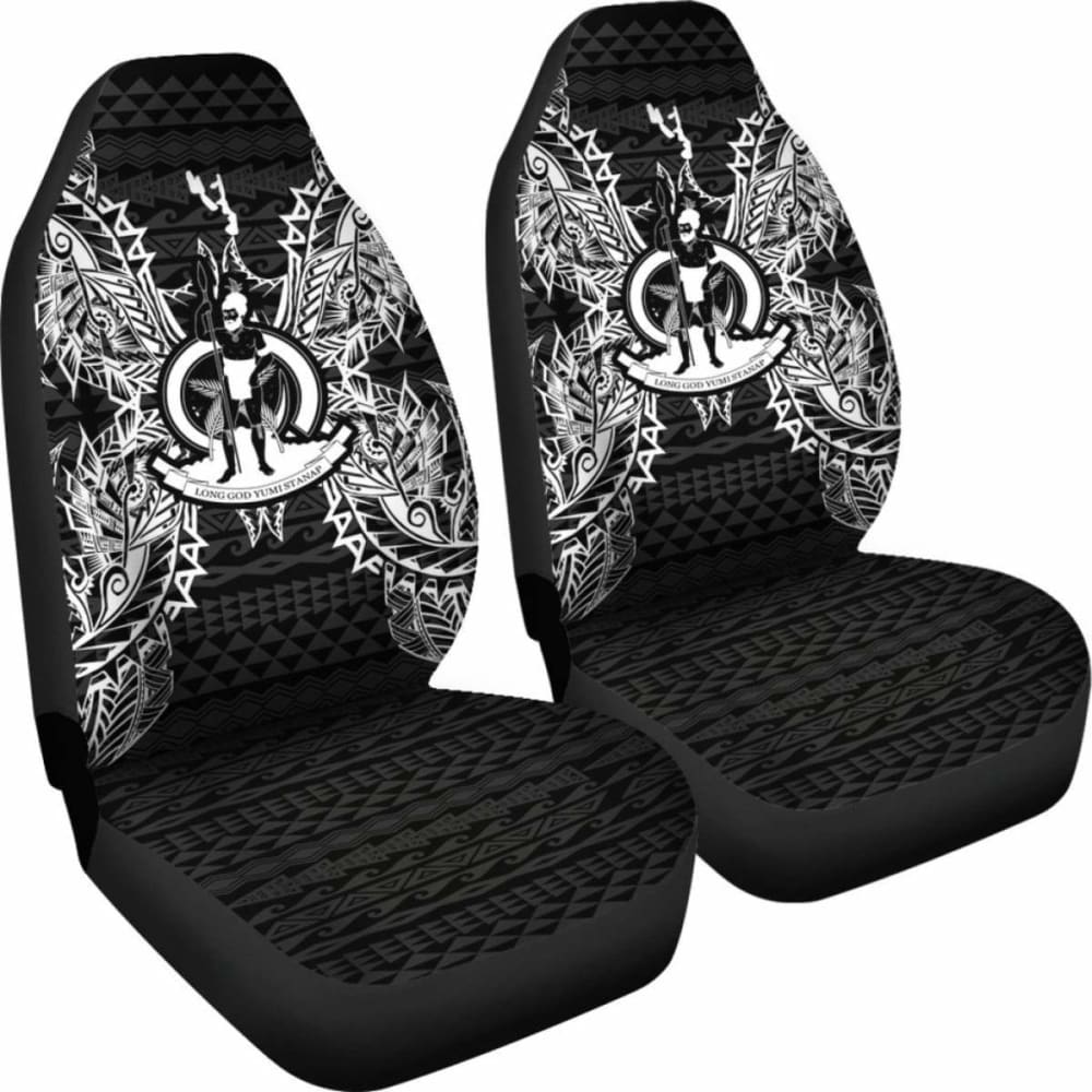 Vanuatu Car Seat Cover - Vanuatu Coat Of Arms Map Black - 105905