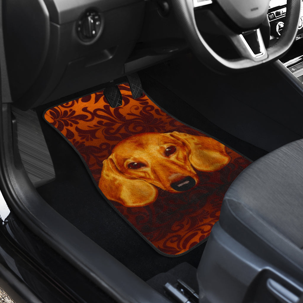 Warm Toned Dachshund Portrait with Decorative Swirls Car Floor Mats 211402
